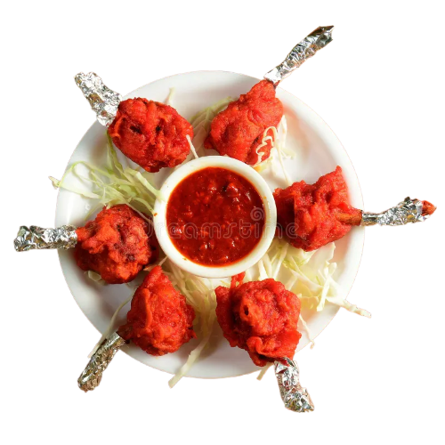 Chicken Lollipop is a popular Indo-Chinese starter made by frenched chicken wings or drumettes. The meat is pushed to one end of the bone to form a “lollipop” appearance. These pieces are marinated in a spicy batter of red chili powder, ginger-garlic paste, turmeric, soy sauce, and corn/all-purpose flour, then deep-fried until golden and crisp. Often tossed in schezwan or sweet chili sauce and garnished with spring onions or sesame seeds.