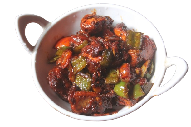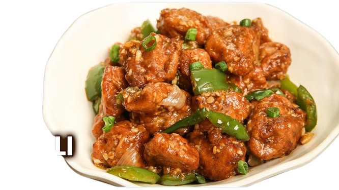 This popular Indo-Chinese starter features boneless fish pieces (commonly basa, tilapia, or firm white fish) marinated in spices, floured, and deep-fried until golden. The fried fish is stir-fried in a fiery sauce made with garlic, green chillies, capsicum, soy sauce, ketchup, chili sauce, vinegar, and a sprinkle of fresh pepper powder. Crisp on the outside and tender inside, each piece carries a bold, sweet‑sour‑spicy flavor. Cooked quickly and served fresh, it's ideal alongside fried rice or noodles.