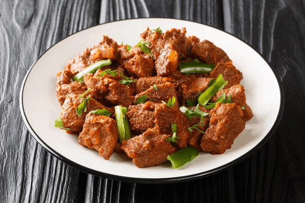 Tender mutton pieces stir‑fried with onion, green chillies, and aromatic spices—bold, spicy, and perfect as a shareable starter.